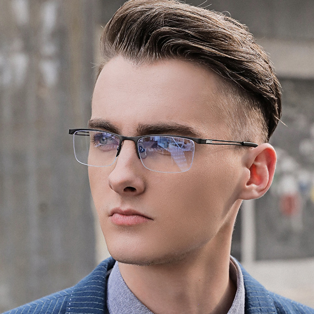 A sophisticated choice for the modern man. This premium blue light eyewear is crafted for professionals who need essential computer glasses. Our half-frame blue light blocking glasses offer sharp style and all-day focus.